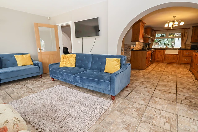 This property boasts a wonderful games room with a host of activities for some friendly competition as well as a standout bar room which makes it ideal for families and friends who are looking for a unique homely experience. Upon entering, you'll find the kitchen, where you can prepare delicious meals to be enjoyed at the dining table, seating eight.