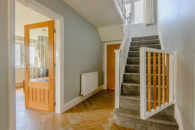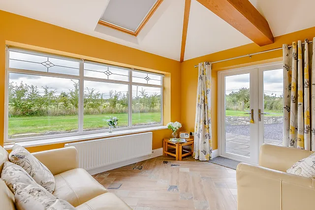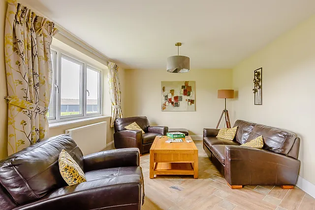 Inside, the cottage boasts a stylish fitted kitchen, a comfortable lounge with a wood burner, and a sunroom filled with natural light. Each bedroom comes with a TV, ensuring entertainment and relaxation for everyone.