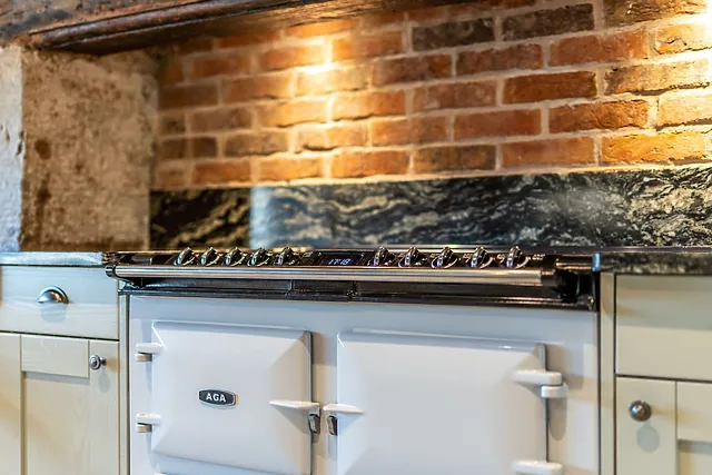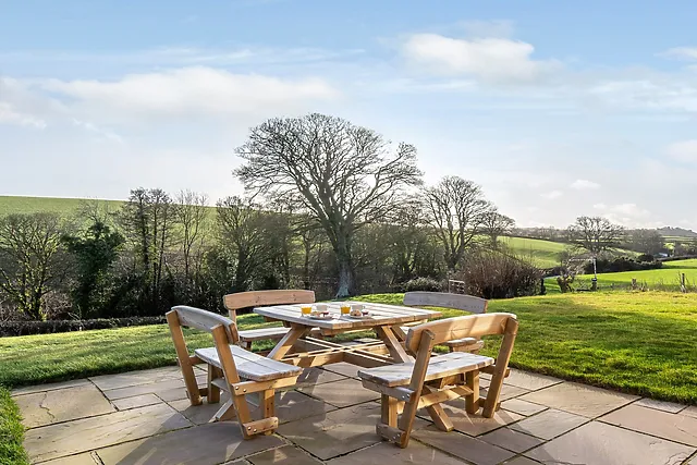 The fully equipped kitchen, complete with an Aga, ensures a delightful cooking experience. Step outside to a large patio, complete with a private hot tub, where you can soak under the stars, surrounded by picturesque views of the countryside.
