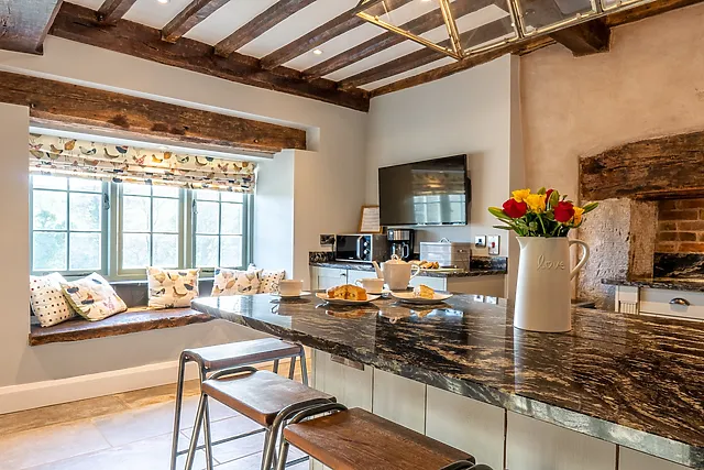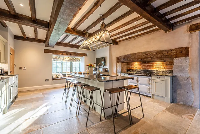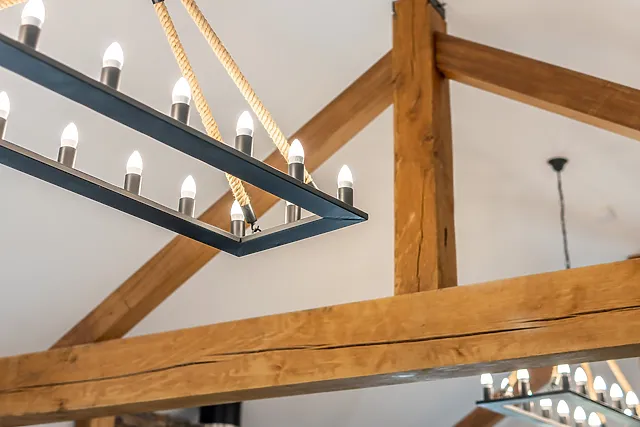 Indulge in the warmth of the wood burner in the cosy lounge or gather around the grand dining table under the impressive A-frame beams for memorable meals.