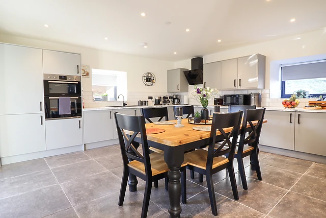 Be welcomed into the spacious kitchen/diner, fully-equipped with everything the budding chef of the group will need to conjure up delicious feasts, as well as a handy washing machine, tumble dryer and dishwasher for keeping your space tidy! Gather around the dining table for six as you savour a flavourful meal and plan the following day's itinerary.