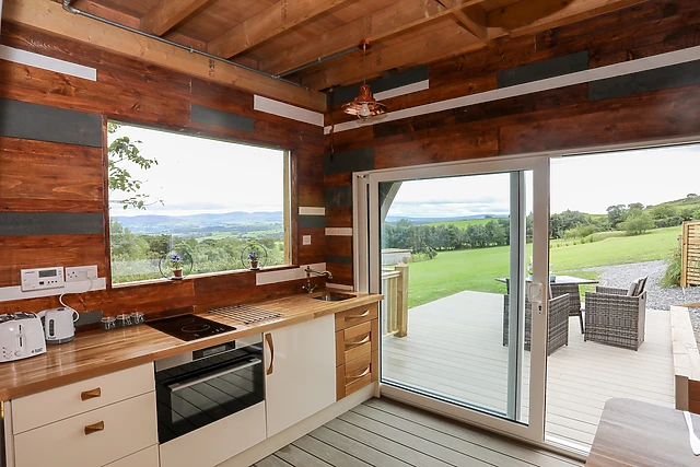 The accommodation includes a contemporary kitchen/diner area that is well-equipped with a combi microwave/oven, electric hob, and fridge/freezer, allowing you to prepare and enjoy home-cooked meals during your stay.