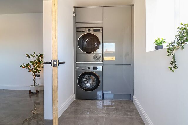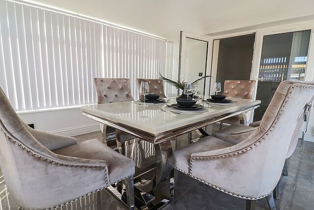 A separate dining room provides a dedicated space for gathering over food, while the utility room adds a practical touch for longer stays. The property hosts three well-appointed bedrooms across two floors.