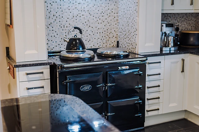 The open-plan living space, complete with a woodburning stove, provides the perfect setting for family gatherings, while the well-equipped kitchen allows for delightful home-cooked meals.