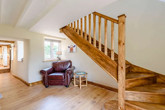 The farmhouse kitchen, complete with all the essentials, invites you to prepare meals with local produce, while the spacious dining room sets the stage for memorable feasts.