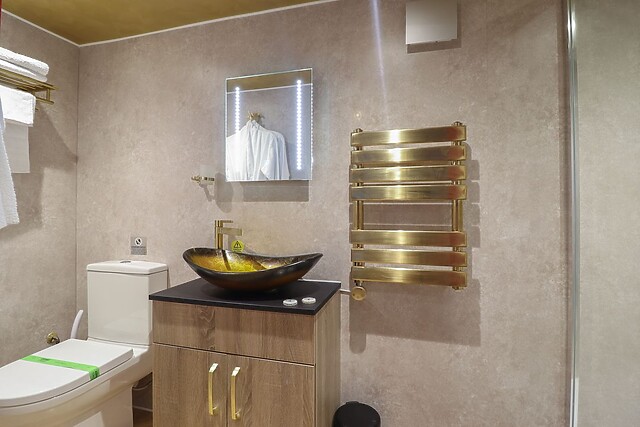 Step through the ‘show curtains’ (french doors) and into your elaborate home-from-home. The studio-style layout combines living, cooking and sleeping areas, providing all you need in this mesmerising space.