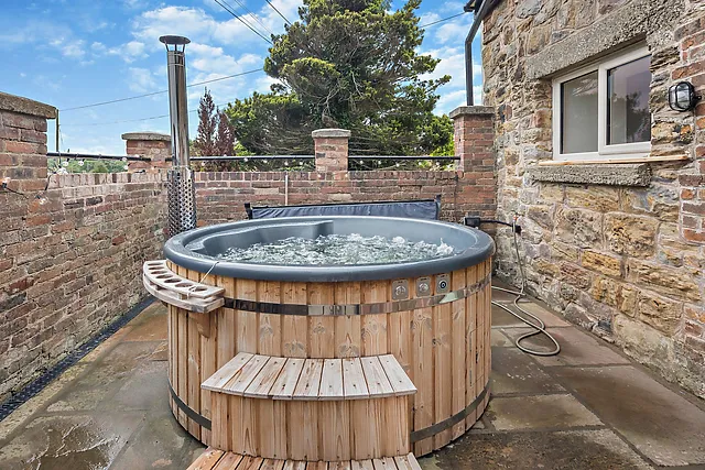 Yes, the accommodation features an enclosed wood-fired hot tub, providing a luxurious and relaxing experience with stunning countryside views.