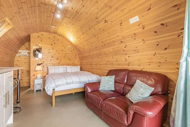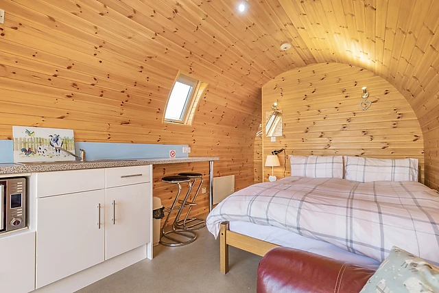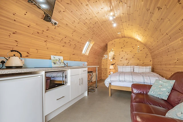 A retreat away from the hustle and bustle is what this property can offer you and your other half, to allow you to enjoy some quality time surrounded by nature. There is one main room which magically fits in all you will need, such as the kitchen area with a 2 x ring hob, microwave/oven and sink; there is a two seat sofa, a double bed, a TV with DVD and WiFi.