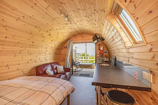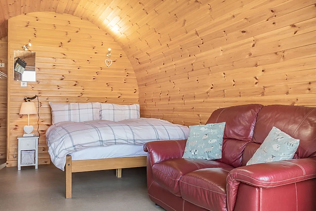 Two Hoots is a superb holiday pod, which sits alongside its identical counterpart Ewe Two. The pod can be found set on the owner's working farm but away from the owner's own property for privacy, offering views over fields and across the River Dee estuary.