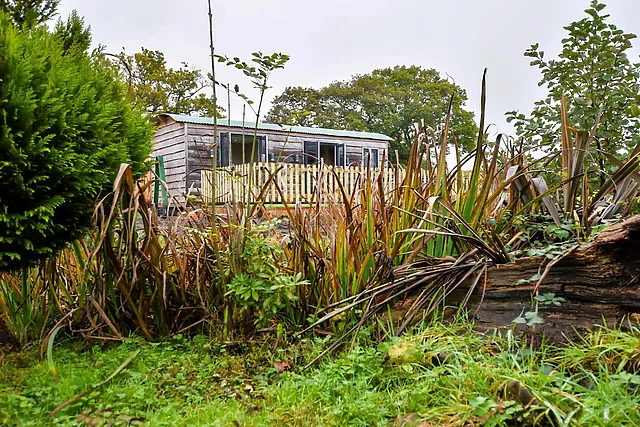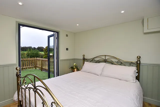 The hut's charming interior features country-style furnishings, a cosy double bedroom, and a stylish shower room.