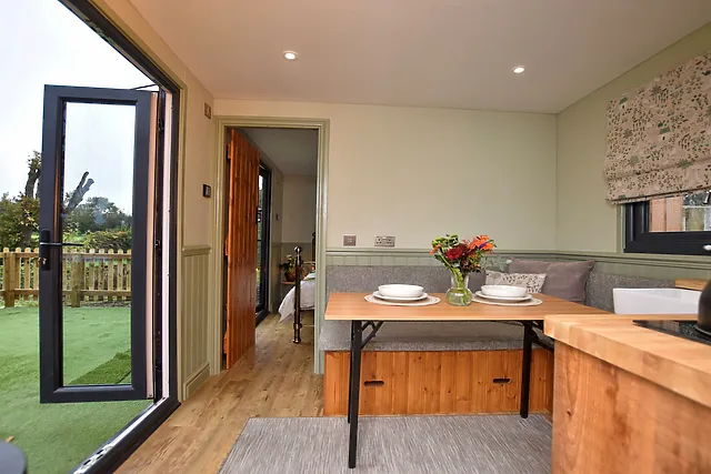 With underfloor heating, a well-equipped kitchen, and a Smart TV, every detail has been considered for your comfort. Outside, the deck invites you to enjoy al fresco dining with a charcoal BBQ, against the backdrop of rolling hills and the gentle quack of wild ducks.