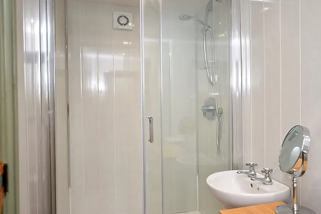 The kitchen area is well-equipped with a 2-ring electric hob, microwave, and fridge/freezer, catering to all your culinary needs during your stay.
