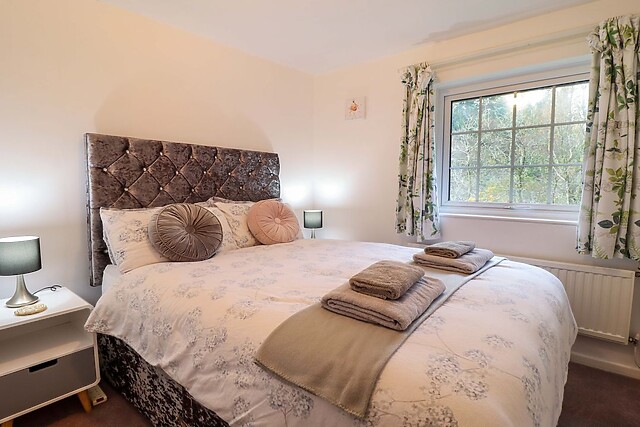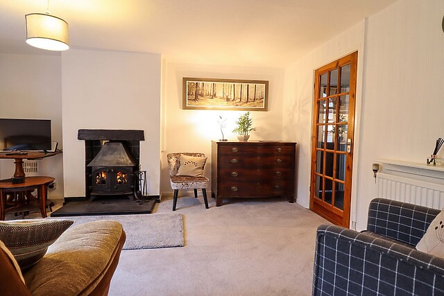 A woodburning stove and Smart TV create a warm atmosphere for evenings in, while a selection of books is available for those quieter moments. A utility room, complete with a washing machine and tumble dryer, adds extra convenience to your stay, while a handy cloakroom with a WC completes the thoughtfully designed ground floor of this charming cottage.