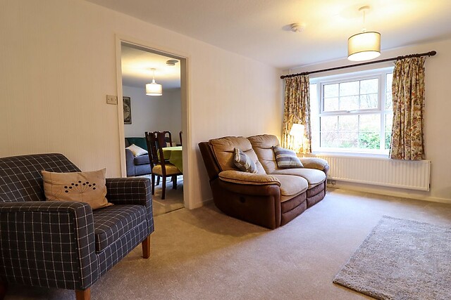 A private track guides you to the front of the property, where the gentle sounds of the river passing by and the shelter of surrounding trees create a peaceful atmosphere. Here, you'll find convenient off-road parking, making unloading a breeze.