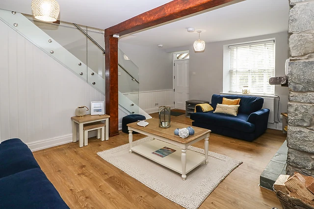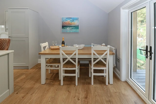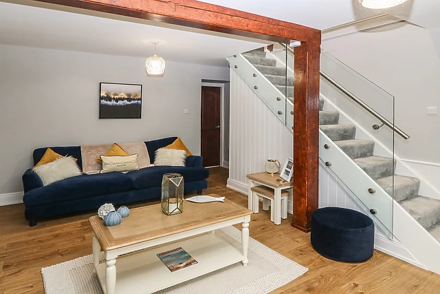 Step inside to the welcoming lounge, where you can relax with a good book or movie night in front of the woodburning stove and Smart TV. Through to the first floor kitchen, here you will find all the essential appliances for a week away including an electric double oven and induction hob, microwave, fridge/freezer and dishwasher.