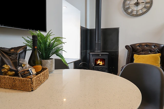 Rustle up hearty meals in the kitchen and dine indoors encompassed by the warmth of the woodburning stove, or if the sun is shining, climb up to the terrace and dine alfresco, enjoying elevated views of Bird Rock or have a soak in the wood fired hot tub. After some time, socialising and making plans, complete your nightly routine in the shower room, before sloping off to sleep in the sumptuous double bed.