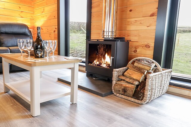 Relax in the open-plan living space, complete with a woodburning stove that adds a touch of rustic charm to your stay.