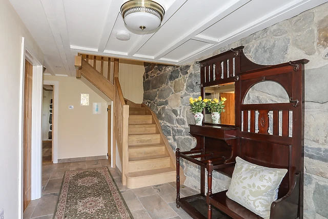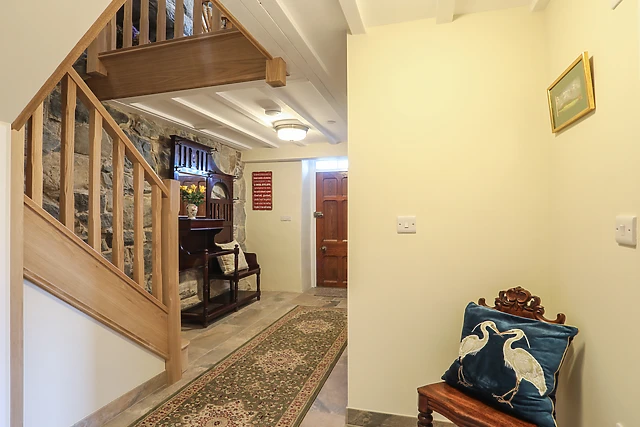 Park up and be welcomed by the beautiful exterior of this property, entering into a reverse-level property with the bedrooms and bathrooms on the ground floor. Here you will find a simply gorgeous double room with characterful exposed stone walls, stylish furniture, and a contemporary en-suite with an opulent free-standing bath and walk-in shower.