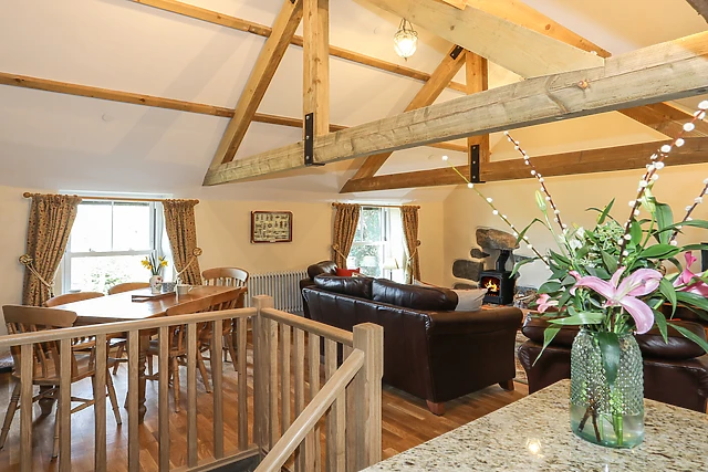 There is also a delightful dining space where guests can indulge in a hearty meal, and the sitting area welcomes you to put your feet up and relax beside the glowing woodburning stove whilst watching a film on Sky TV. From the first floor, access the rear enclosed patio, a tranquil spot from which you can take in the views, relaxing in the sitting area with alfresco dining or a glass of fizz in the evening whilst you cook on the gas BBQ, or take an indulgent dip in the hot tub.