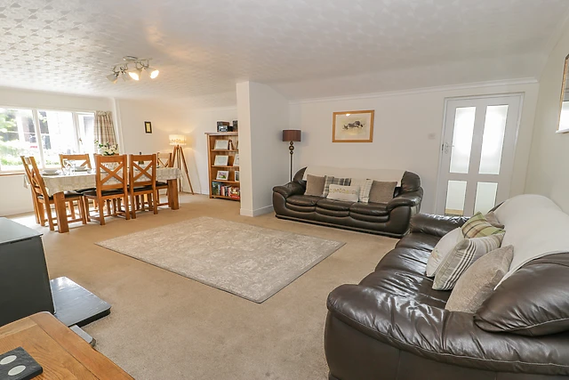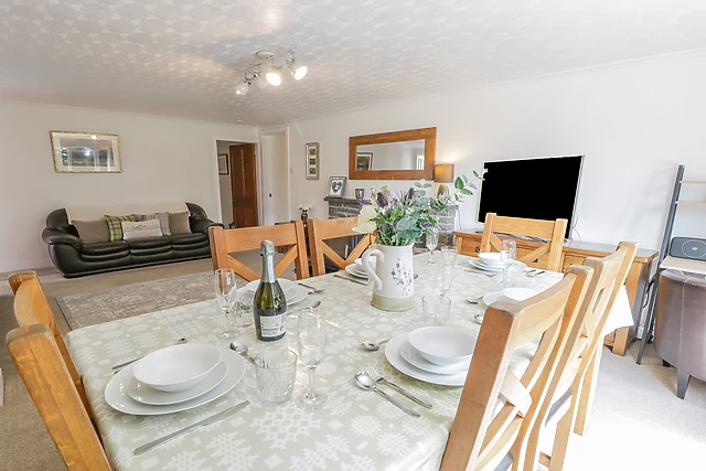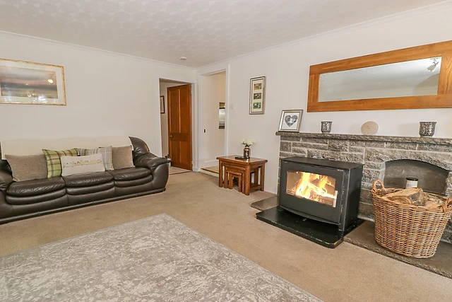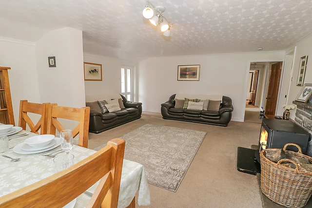 Experience the warmth of a woodburning stove in the spacious living/dining room, complete with a 32" Smart TV for your entertainment.