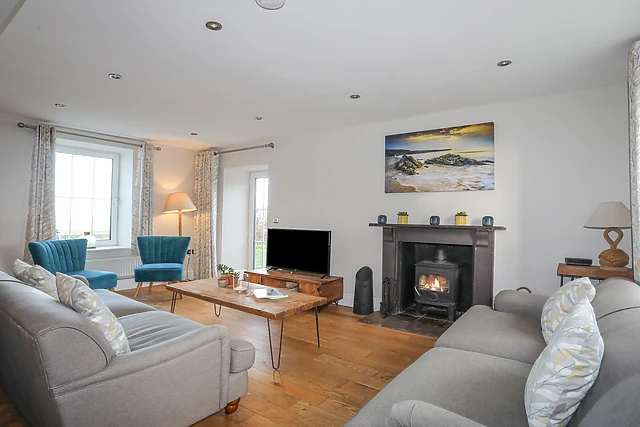 A woodburning stove adds a cosy touch to the evenings, while the fully equipped kitchen allows for delightful home-cooked meals. Step outside to find a side patio with barbecue facilities and a luxurious hot tub, perfect for unwinding under the stars with captivating sea views.