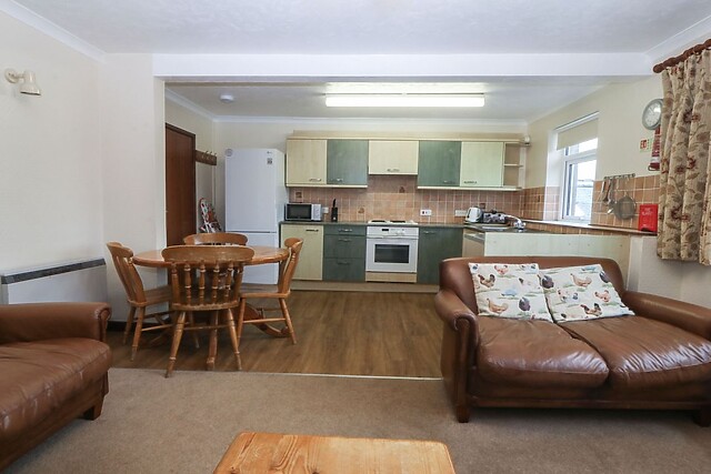 Venture inside to discover the open-plan living area, where you can relax on the inviting seating in front of the Smart TV with a DVD player, perfect for a relaxing movie night in. The electric fire adds a touch of warmth and ambience to the room, making it an ideal spot to unwind after a day of exploring.