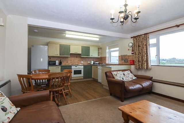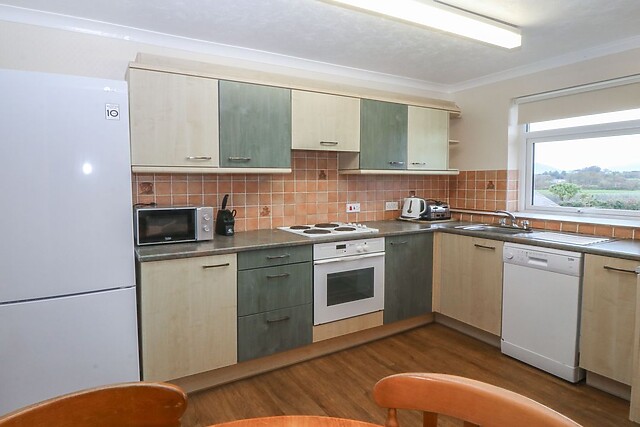 Cwellyn is a pleasing, first-floor apartment situated near the Eyri National Park on the outskirts of Pwllheli in Gwynedd. This pet-friendly retreat offers stunning mountain views, an open-plan living area with an electric fire, and a Smart TV, making it perfect for families or groups of friends seeking a tranquil escape.