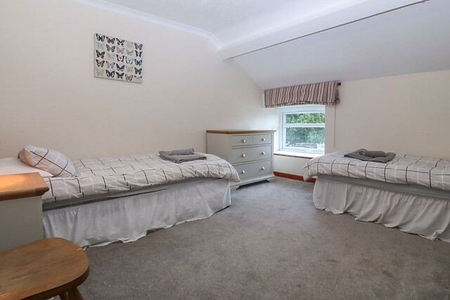 The kitchen area is well-equipped with all the essentials you need to prepare tasty meals, which can be enjoyed at the dining table. When the day draws to a close, retire to one of the two well-appointed bedrooms, comprising a double and a twin, both offering a serene space to rest.