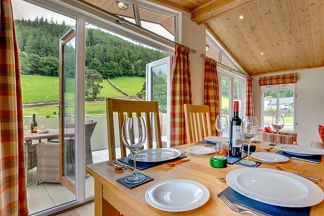 Llyn Dinas Lodge in Betws-y-Coed, North Wales, is a beautifully appointed two-bedroom log cabin that sleeps four. This elegant lodge offers a country-retreat feel with a comfortable open-plan living area and stunning rural views from every room.