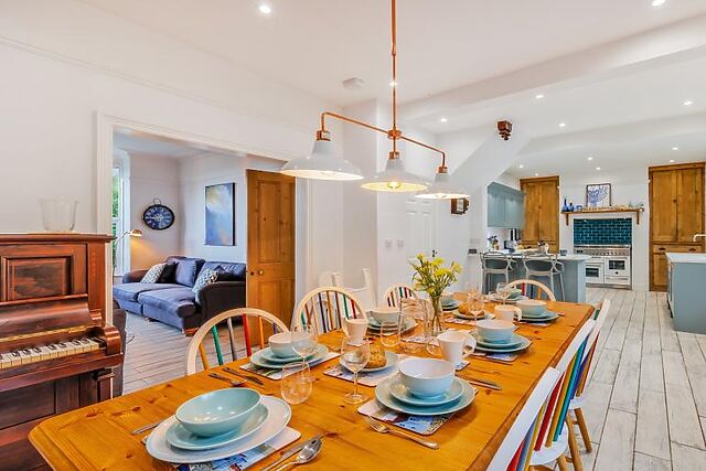 Inside, you'll find a blend of contemporary style and Victorian charm, with two cosy lounges featuring wood burners, a spacious open-plan kitchen/diner, and a range of modern amenities.