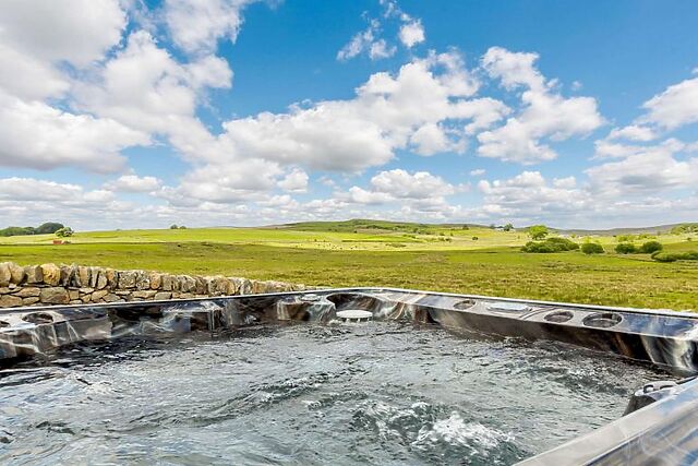 Yes, the accommodation includes a luxurious hot tub, allowing guests to unwind and enjoy the stunning views of the surrounding countryside in a warm and relaxing setting.