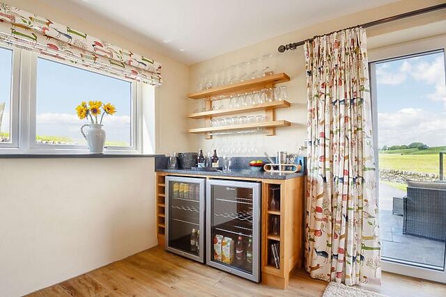 Indulge in the ultimate relaxation with an on-site hot tub, where you can soak in the warmth while admiring the breathtaking countryside vistas. The enclosed garden provides a secure space for outdoor activities, and the fire pit adds a touch of magic to your evenings under the stars.
