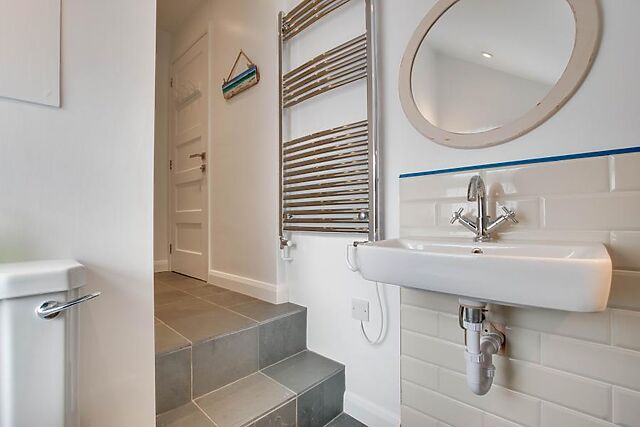 On the ground floor also lies a contemporary double bedroom and a shower room. Upstairs lie 3 further individually styled bedrooms with fabulous tones and textures and a luxury bathroom with roll top bath and separate shower.