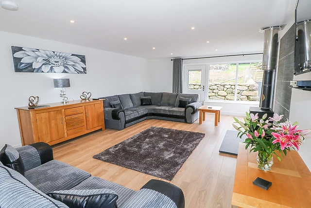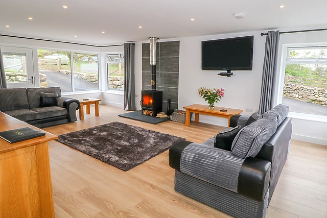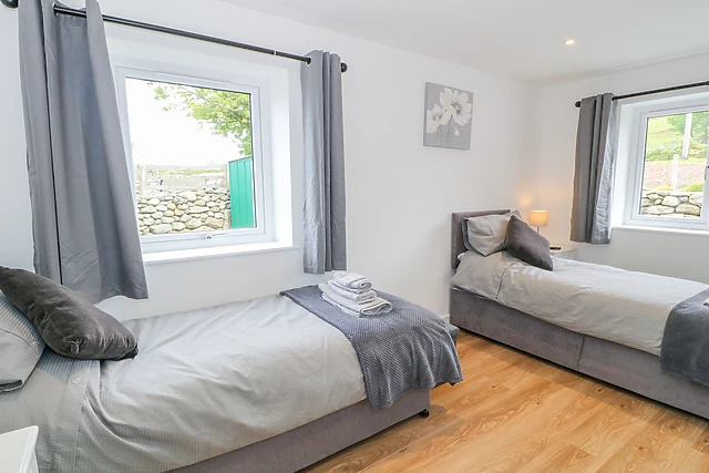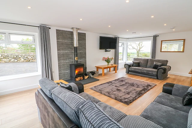 Nestled in the rolling hills of Llanllyfni, near Caernarfon, is this delightful detached cottage, bordering the Snowdonia National Park and featuring far-reaching views towards the sea. This property is a modern new build holiday home for large families or a group of friends.