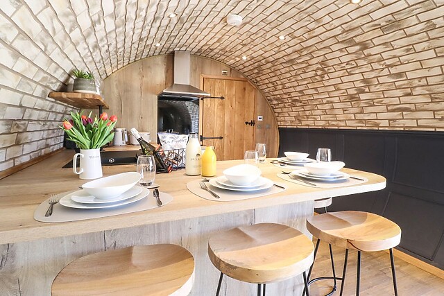 Indulge in the luxury of the wood-fired hot tub, an ideal spot to unwind under the stars. The private garden features a gravelled area, patio, and sheltered decking, inviting you to dine alfresco amidst the tranquil surroundings.