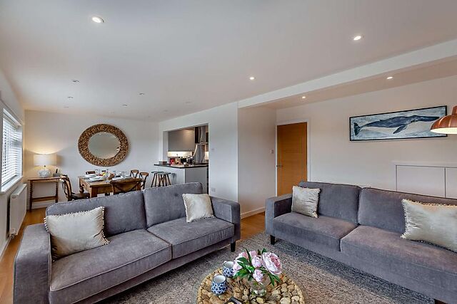 With space for up to six and one dog also welcome, it’s ideal for a family holiday or trip among friends. The inside of this delightful home is light and airy, with an L-shaped living space encompassing a lounge, kitchen and dining area.