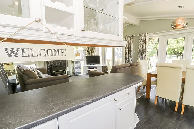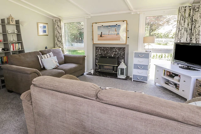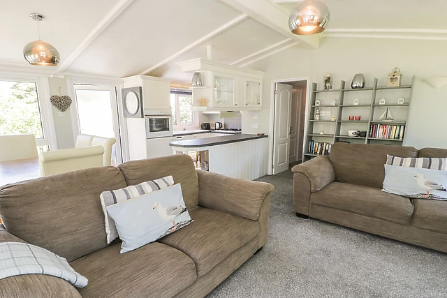 Inside, you'll find a welcoming open-plan living space complete with a kitchen, dining area, and sitting area with a gas fire. The lodge is pet-friendly, ensuring your furry friends can join in the fun.
