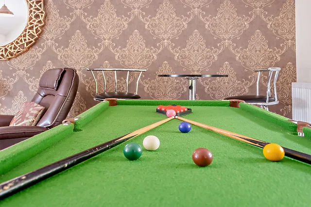 Indulge in the opulence of the hot tub while soaking in the serene river views, or engage in friendly competition in the well-equipped games room.