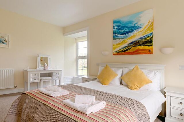 Upstairs, you'll find three en-suite king-size bedrooms, another king-size bedroom, and two double bedrooms, all featuring TVs and window seats with stunning views.