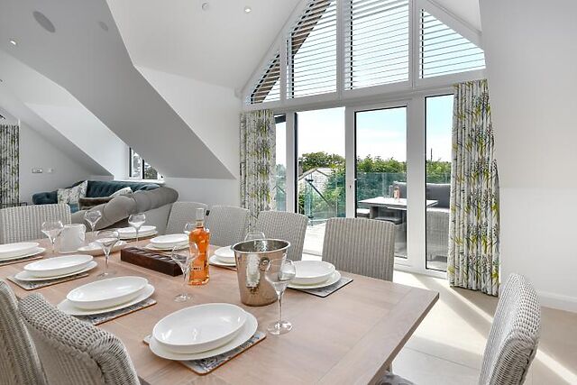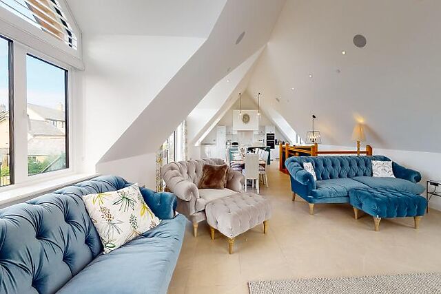 With a spacious, open plan living area consuming the whole upstairs area, including a balcony, this is a beautiful space to sit back and enjoy time together. From sea views to a private hot tub, underfloor heating to a 4K OLED TV system, Sky Q and Sonos surround sound system.