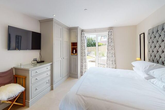 *Please note that all beds can be arranged as twin 3' beds (please request at the time of booking). - Bedroom 1: Super-king size bed (twin beds on request) with TV, chair and garden views.