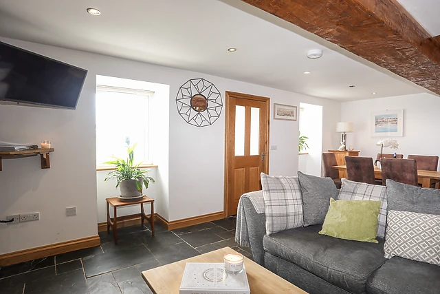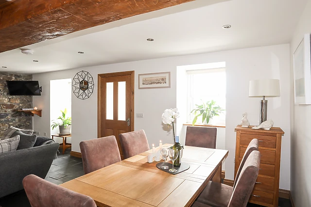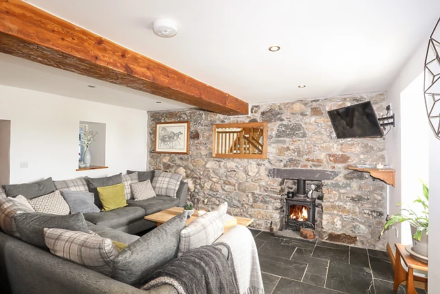 It has allocated parking, making it easy to explore the local area, including its stunning beaches. After parking, enter the living/dining room, a perfect space for relaxation with exposed stonework adding a touch of charm and plush seating allowing you to unwind in front of the TV with Netflix or Amazon TV and a glowing woodburning stove.