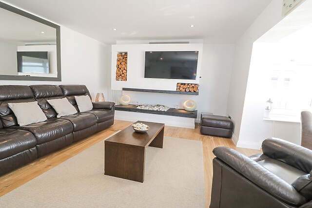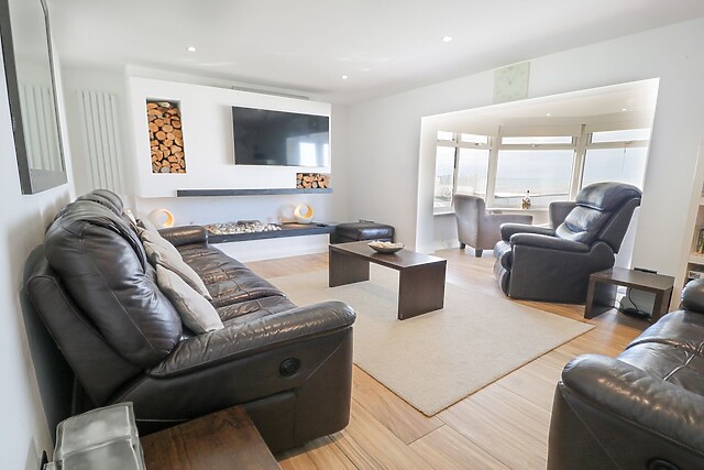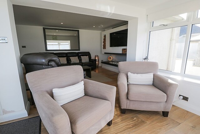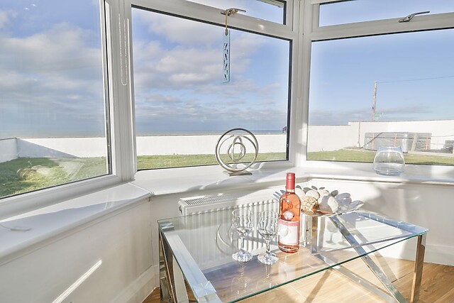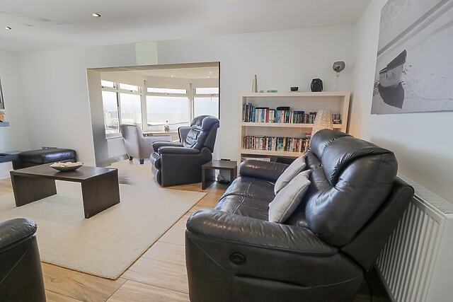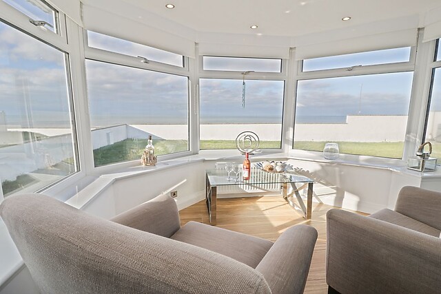 Wander through the home and you’ll find a delightful sitting room, perfect for snuggling up with loved ones, watching TV, or simply gazing out at the stunning sea views beyond from the adjoining conservatory. Stepping outside, you will find an enclosed rear garden, complete with a well-kept lawn and patio area.