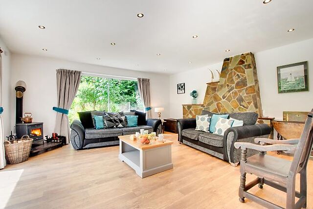 Inside, you’ll find a bright and airy kitchen with contemporary fittings and a handy breakfast bar. The lounge is inviting with a warming wood burner and comfortable seating.