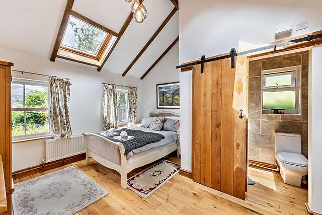 Inside, you'll find a creatively designed kitchen, a separate dining room with a wood burner, and a cosy lounge with a Smart TV and another wood burner. The ground floor features a double bedroom with an en-suite shower room, while the two additional double bedrooms are located upstairs, served by a well-appointed bathroom.
