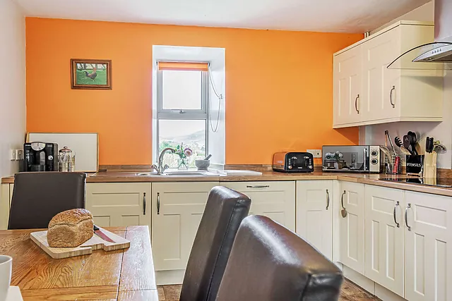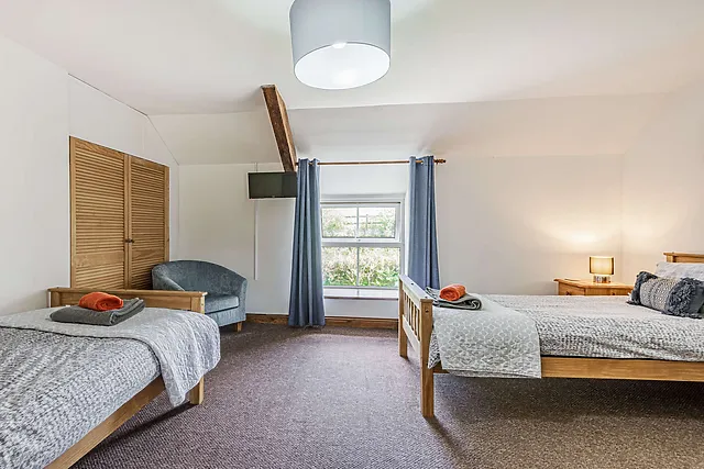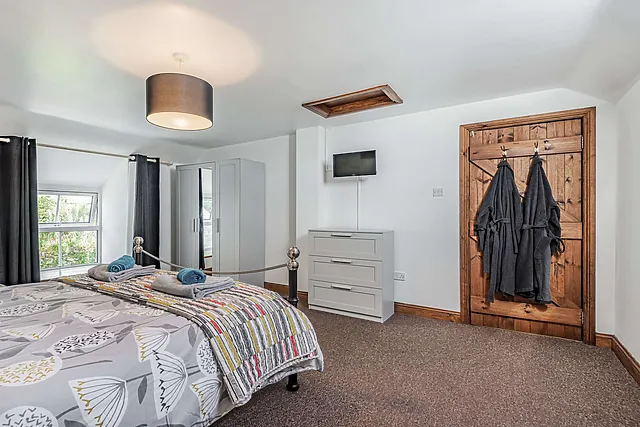 The accommodation boasts three bedrooms, comprising a super-king-size, a king-size, and a twin room, all furnished with quality linen and TVs for a comfortable stay.