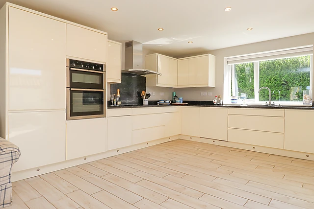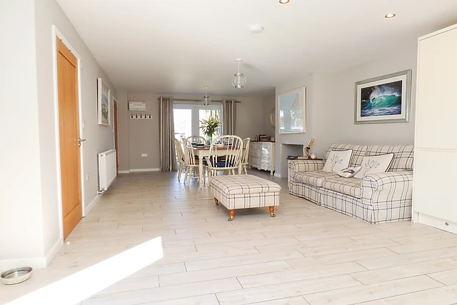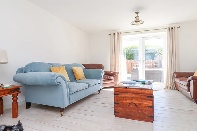 If the weather allows, then you can open the patio doors and step outside to the enclosed gardens, safe for children and pets to run around in. There is a large corner sofa just perfect for guests to take a seat and soak up their surroundings.
