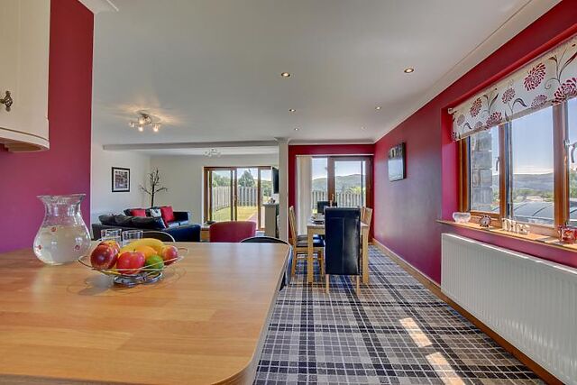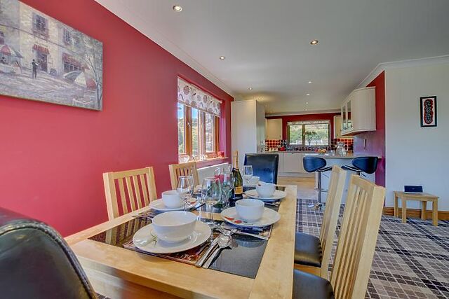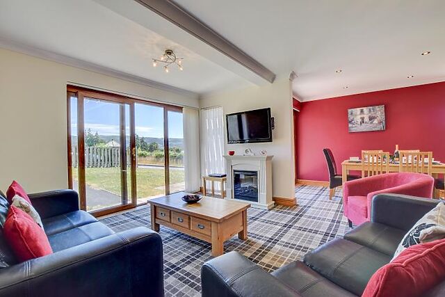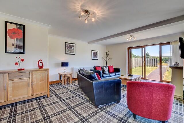 After a hearty meal you can retire to the spacious lounge area in front of an inviting, modern fire feature, large smart TV and DVD player. The triple patio doors across the front of the room means that you can enjoy the vast scenery and a magnificent sense of space from the comfort of your luxury leather sofas.