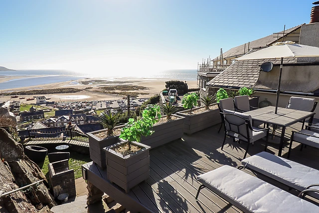 Perhaps the highlight of this home is the terraced garden set over multiple levels; there are two decked areas with patio furniture, a barbecue area, sun loungers and a top level with a covered hot tub and changing room, so there is plenty of room for group to spread out on a sunny day. When you’re ready to explore, venture into Barmouth and discover the sandy beach, where you can spend your time sunbathing and paddling in the shores, or you might fancy trying your hand at range of watersports.