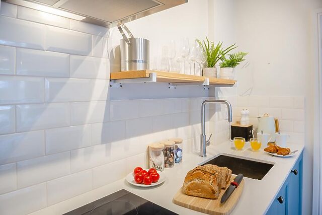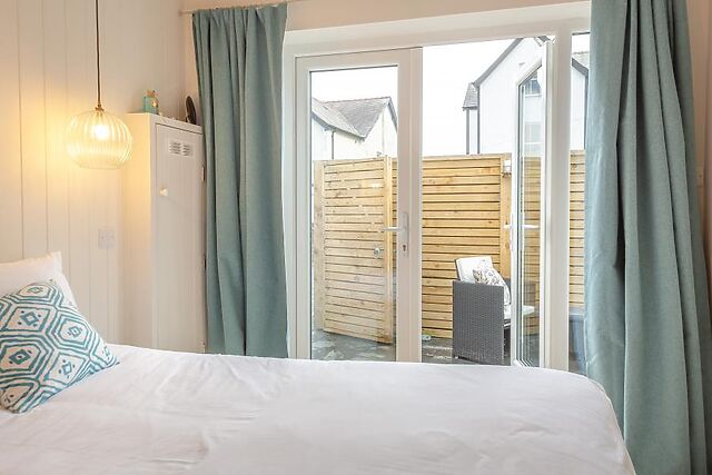 Sleek and stylish, this ground-floor apartment is the perfect base for a romantic coastal break. Stroll through the courtyard and let yourselves in through the patio doors, to find a bright and airy, open-plan living space.